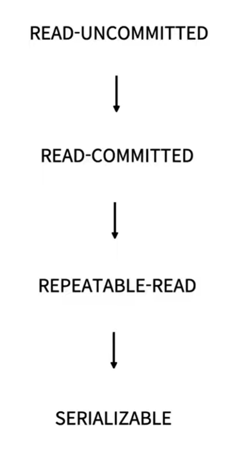 ์ฌ์ง์ ๋ณด๋ฉด ์์์๋ถํฐ READ-UNCOMMITTED, READ-COMMITTED, REPEATABLE-READ, SERIALIZABLE ์ด 4๊ฐ์ง๊ฐ ์กด์ฌํ๋ค.